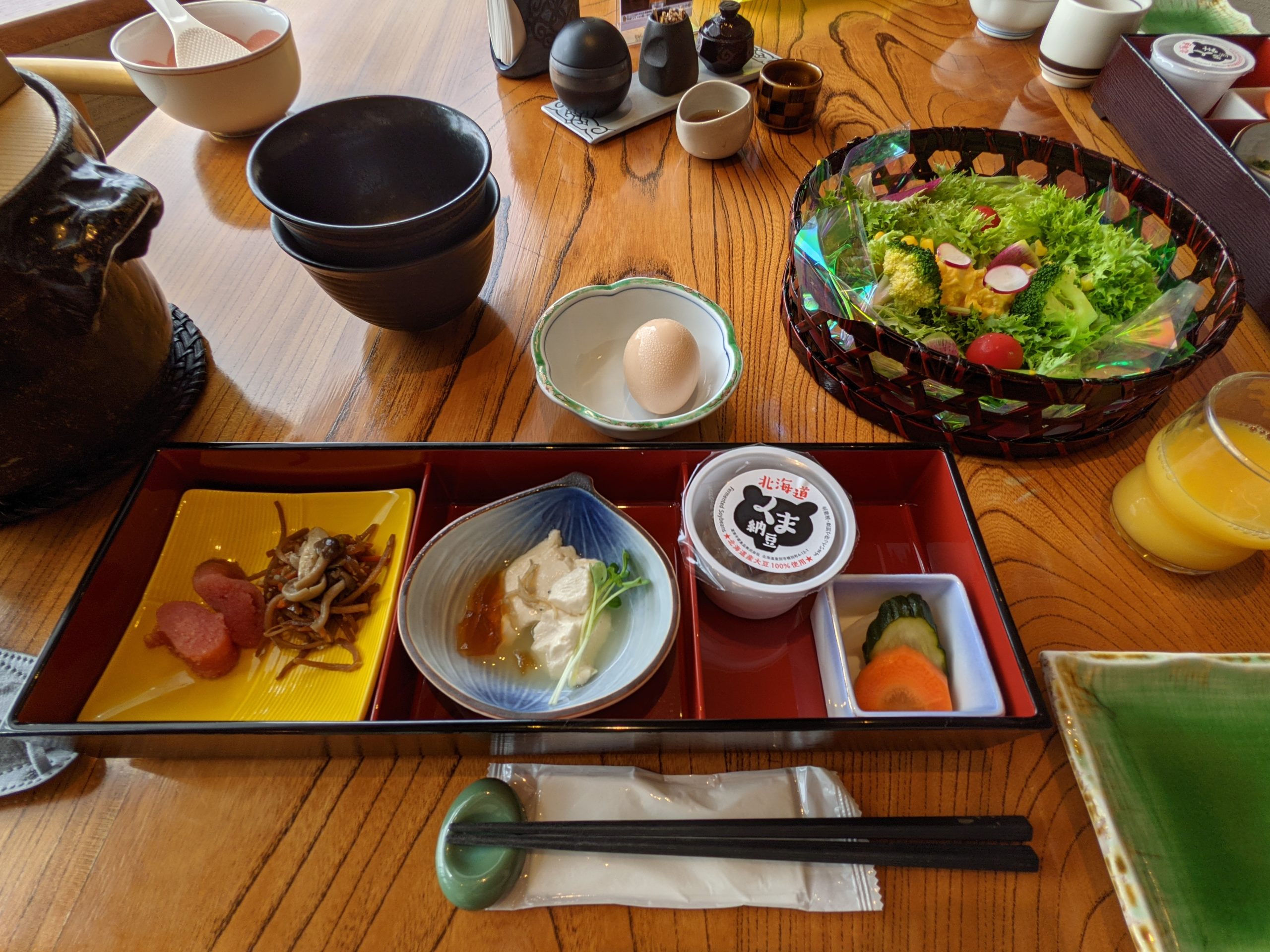 朝食も道産食材がメイン。近くで製造されているたらこが美味しかったなあ・・・
